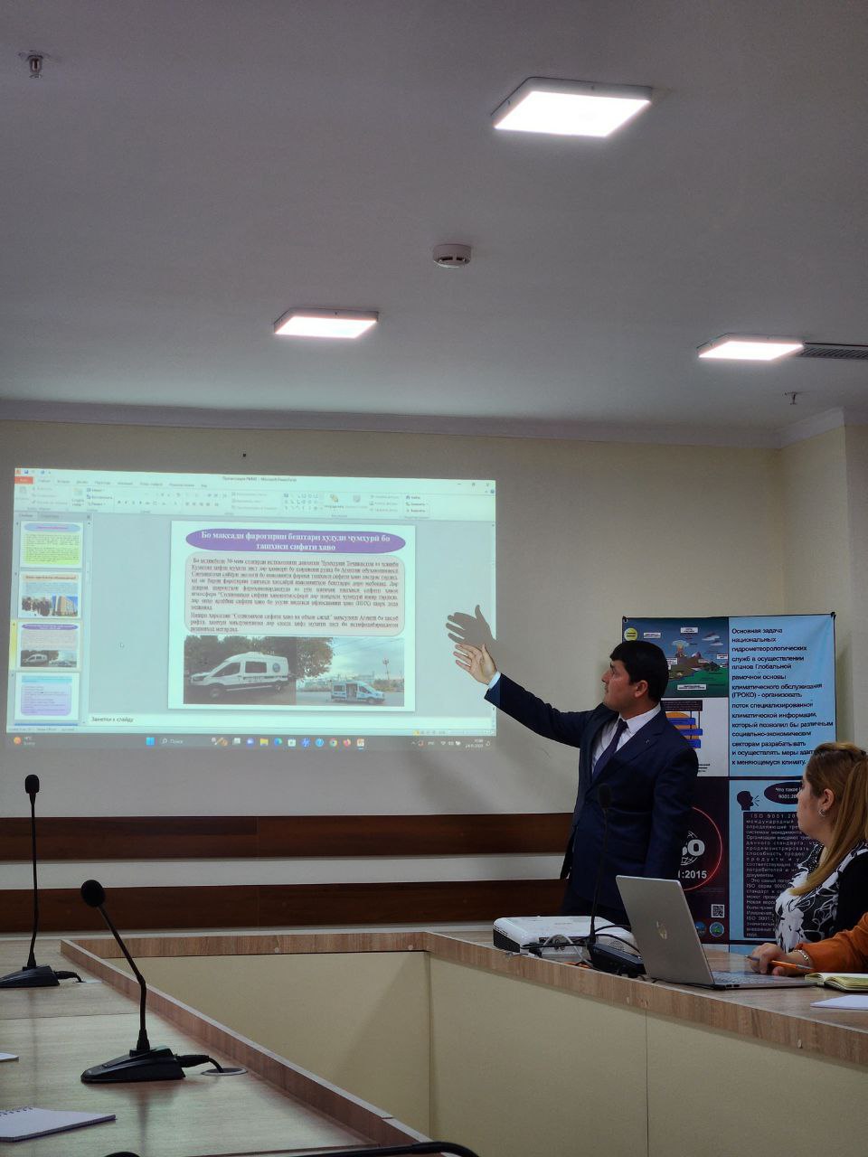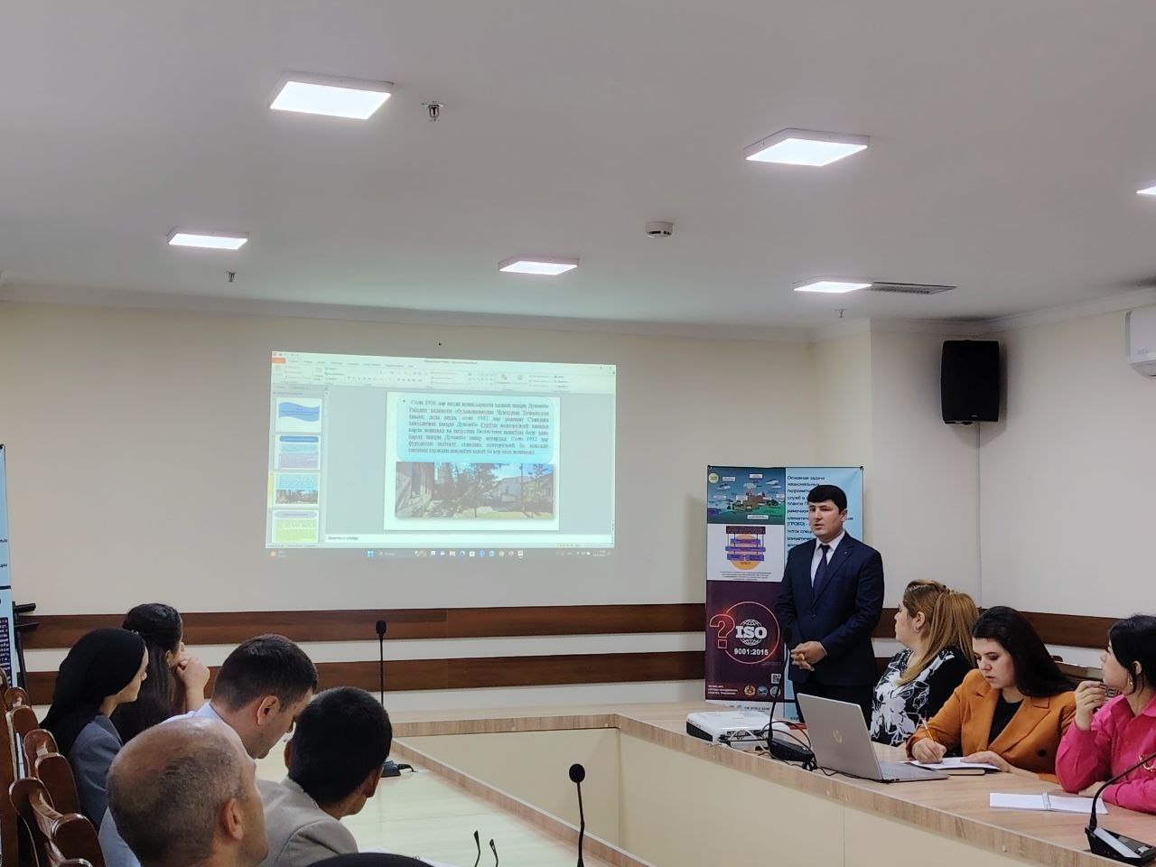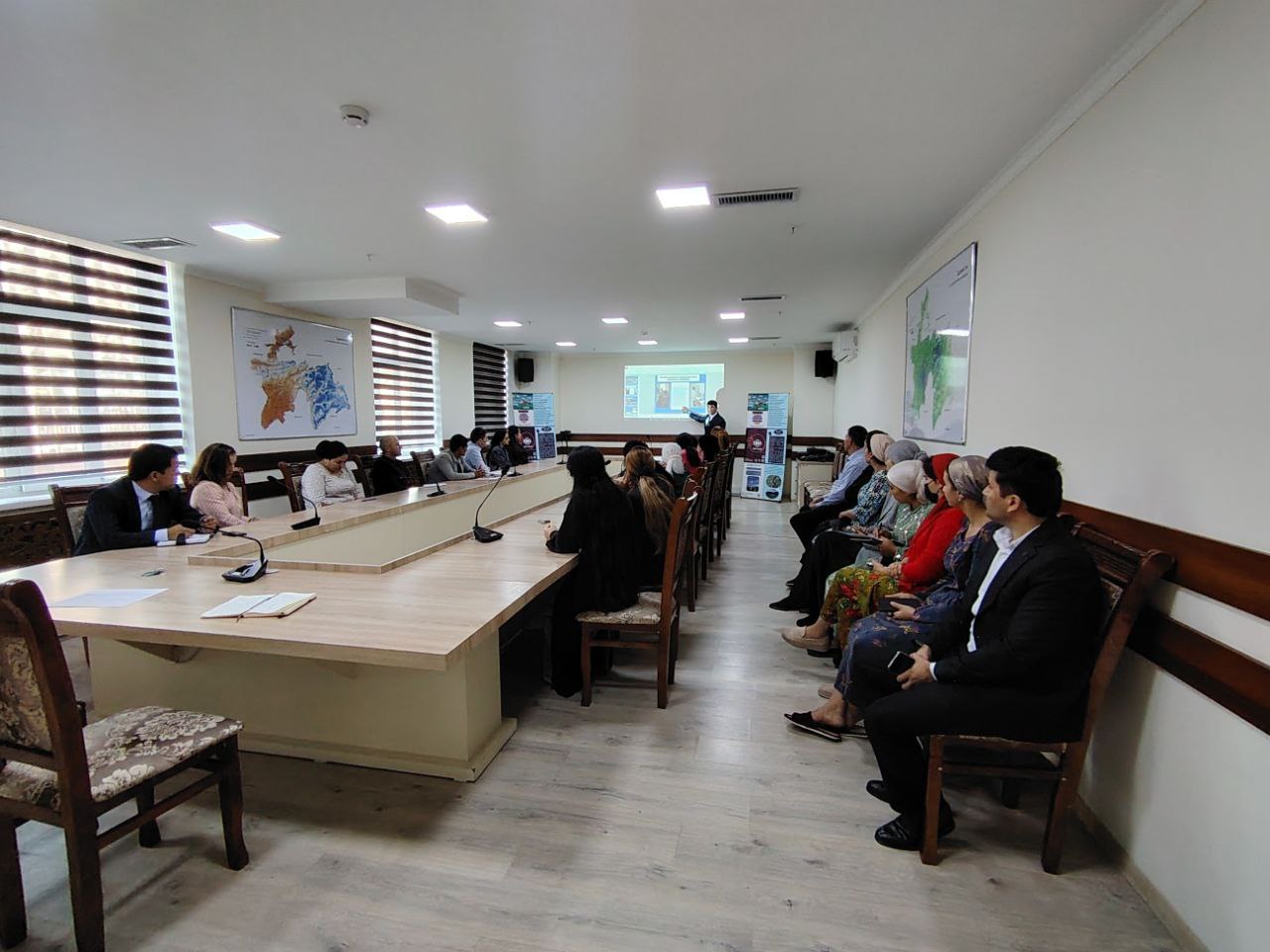 Затем заместитель начальника Управления мониторинга окружающей среды Агентство, Сайфуллоев Н., в рамках учебного занятия выступил с презентацией на тему «Деятельность Управления мониторинга окружающей среды», где представил основные направления контроля и анализа состояния окружающей среды, сбор и обработку данных мониторинга качества воздуха и поверхностных вод, сотрудничество с соответствующими структурами и использование современных технологий наблюдения.